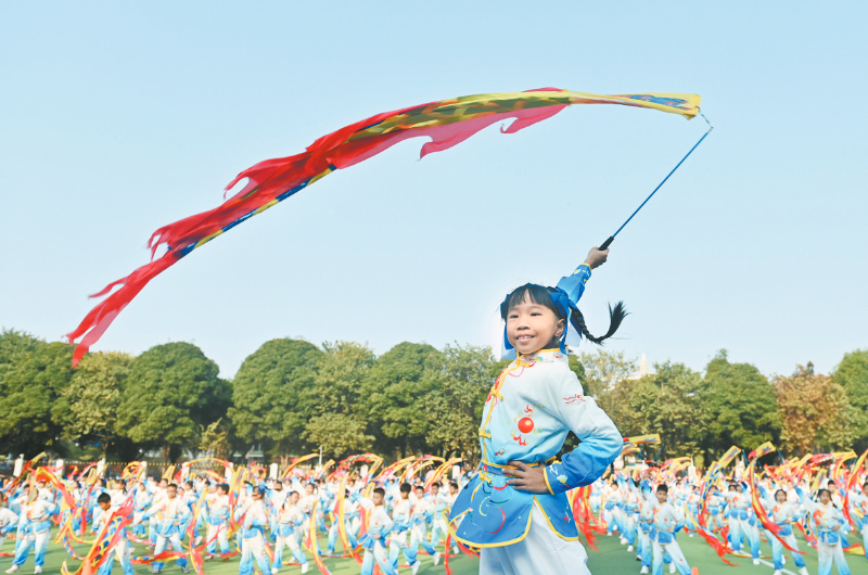 12月9日,在广西南宁市滨湖路小学教育集团滨湖校区,学生在“体育节”开幕式上表演团体操。12月9日,广西南宁市滨湖路小学教育集团滨湖校区举行2025年秋季“体育节”开幕式,全校师生以独具特色的团体操表演,生动诠释体育、艺术与思政教育的深度融合,使校园文化与体育运动和谐同美,展现团结奋进、朝气蓬勃的精神风貌。
