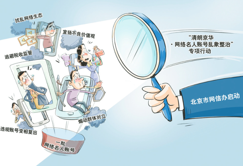 记者从北京市网信办获悉,为进一步规范网络名人账号信息传播秩序,近期北京市网信办启动“清朗京华·网络名人账号乱象整治”专项行动,指导网站平台重点整治煽动群体对立、宣扬不良价值观、扰乱网络生态、违规账号变相复出、逃避税收监管等突出问题,发现并查处了一批网络名人账号。