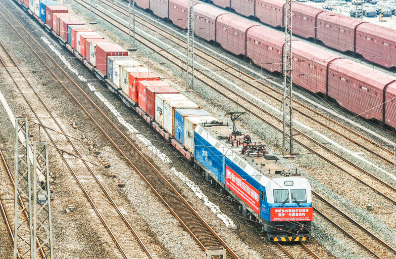 12月15日,一列装载化工产品、摩托车零配件等货物的中新多式联运示范项目重庆—东南亚班列缓缓驶出重庆鱼嘴站,将向南经广西钦州以铁海联运方式发往新加坡。与此同时,另一条轨道上,一列装载汽车KD件的中新多式联运示范项目重庆—中亚国际班列同步发车,将向西经阿拉山口以国际铁路联运方式发往哈萨克斯坦。 新华社记者 唐奕 摄