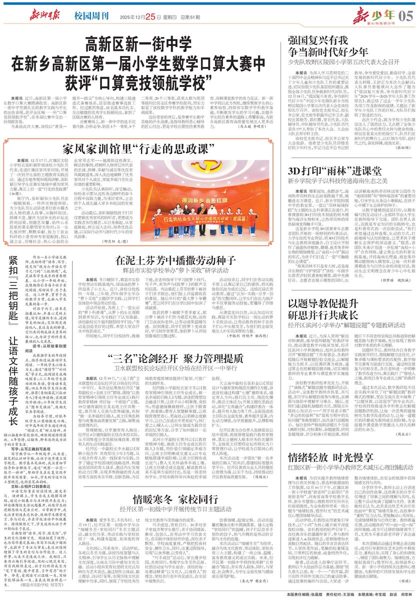 高新区新一街中学 在新乡高新区第一届小学生数学口算大赛中 获评“口算竞技领航学校”