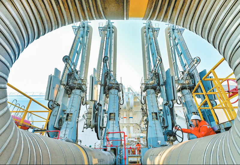 1月5日,工人在国家管网天津LNG接收站码头巡检。