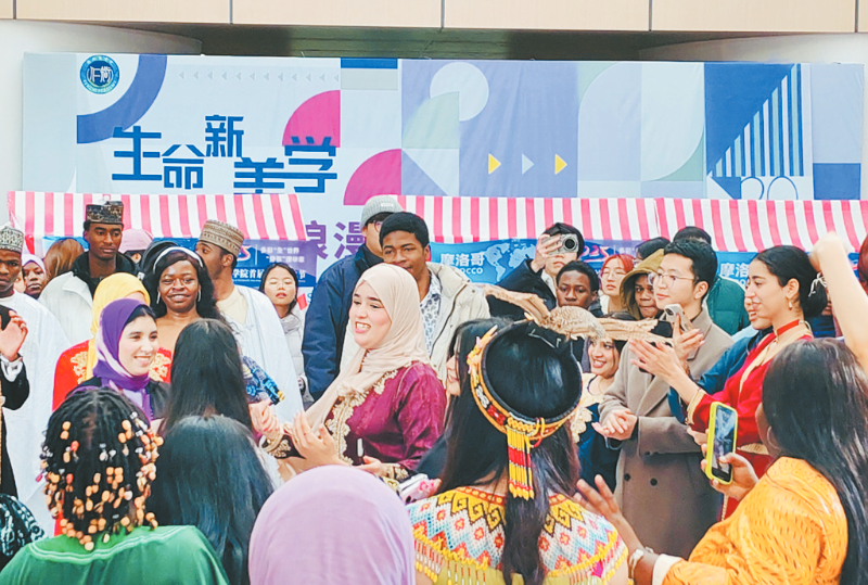在美育成果展同期,由国际教育学院主办,大学生国际交流协会与仁智书院共同承办的国际文化交流节同步启幕。美育展特别融入“中外美育文化交流角”,为跨文化对话搭建了生动平台。通过各国代表性美学符号、艺术风格与手工艺品的并置展示,配合相应地域的音乐、影像与艺术导览,营造出沉浸式的文化感知场域。这一创新融合,不仅拓宽了学生的全球审美视野,也在互动体验中促进了对多元文明的深度理解与情感共鸣,生动诠释了“各美其美、美美与共”的文明交流理念。