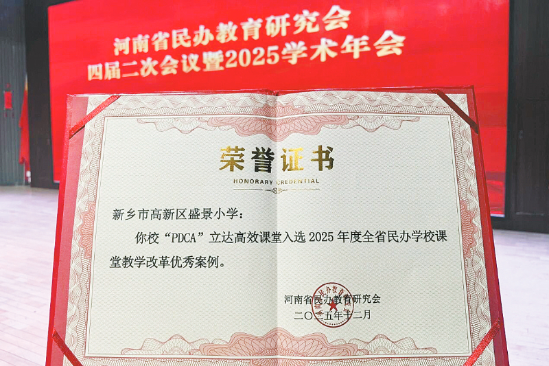 本报讯 近日,河南省民办教育研究会四届二次会议暨2025学术年会在郑州建业外国语中学举行。新乡天立盛景小学凭借扎实的办学实践与创新的育人探索,申报的四项成果均被评为省级优秀案例,充分彰显了学校在校园文化、课堂改革、德育建设和教育宣传等领域的突出成效(如图)。