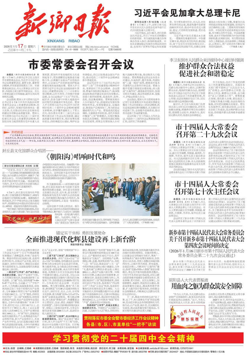 新乡市第十四届人民代表大会常务委员会 关于召开新乡市第十四届人民代表大会 第四次会议时间的决定