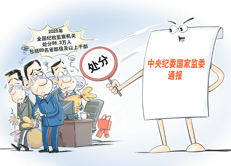 中央纪委国家监委网站1月17日消息,中央纪委国家监委通报2025年全国纪检监察机关监督检查、审查调查情况。2025年,全国纪检监察机关共立案101.2万件,处分98.3万人,其中包括省部级及以上干部69人。 新华社发王鹏作
