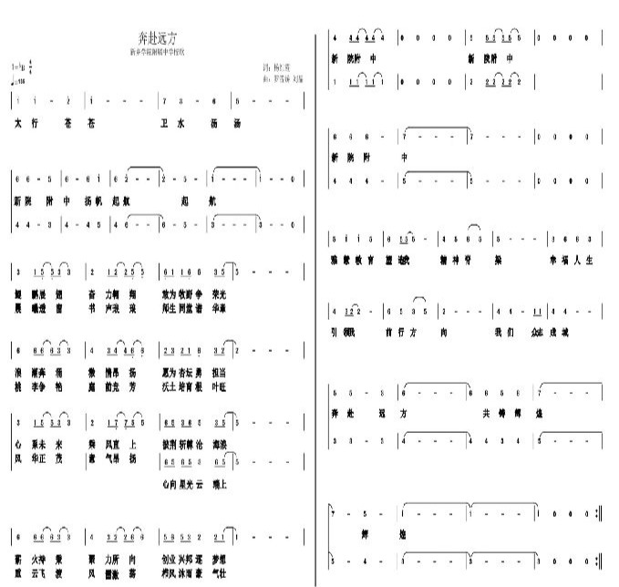 新乡学院附属中学校歌《奔赴远方》创作于2024年,是一首凝聚学校精神、彰显教育理念的音乐作品。歌曲以雄浑激昂的旋律和饱含深情的歌词,展现了学校扎根牧野大地、培育时代新人的使命担当,同时寄托了学校对学子们志存高远、勇攀高峰的殷切期望。