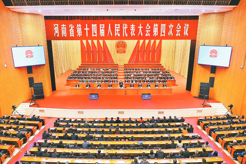 上午9时,大会开始。会议依次表决通过了河南省第十四届人民代表大会第四次会议关于政府工作报告的决议、关于河南省国民经济和社会发展第十五个五年规划纲要的决议、关于河南省2025年国民经济和社会发展计划执行情况与2026年国民经济和社会发展计划的决议、关于河南省2025年预算执行情况和2026年预算的决议、关于河南省人民代表大会常务委员会工作报告的决议、关于河南省高级人民法院工作报告的决议、关于河南省人民检察院工作报告的决议。