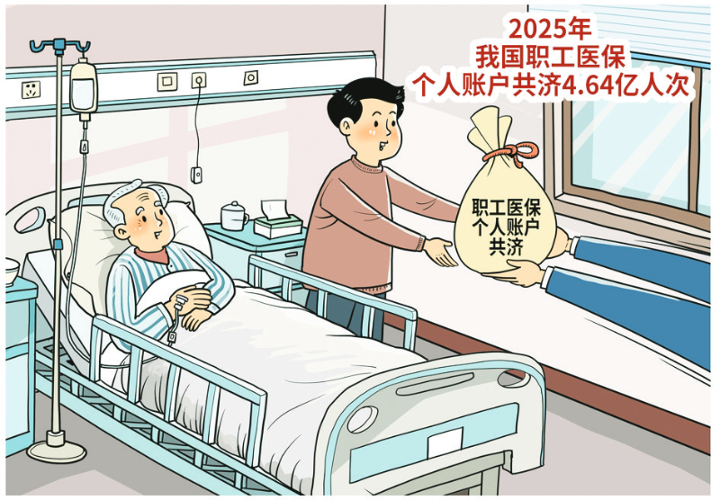 记者1月30日从国家医保局获悉,2025年1至12月职工医保个人账户共济人次4.64亿,金额687.7亿元。职工医保个人账户共济,简单来说,就是打破地域限制,让参保人个人账户的钱能让家人使用,可以通过即时调用被绑定人个人账户、医保钱包等方式实现。2025年通过即时调用被绑定人个人账户方式进行职工医保个人账户省内共济的人次4.63亿,共济金额680.20亿元,通过医保钱包进行职工医保个人账户省内共济64.88万笔、跨省共济47.22万笔,共济金额7.50亿元。 新华社发 朱慧卿 作