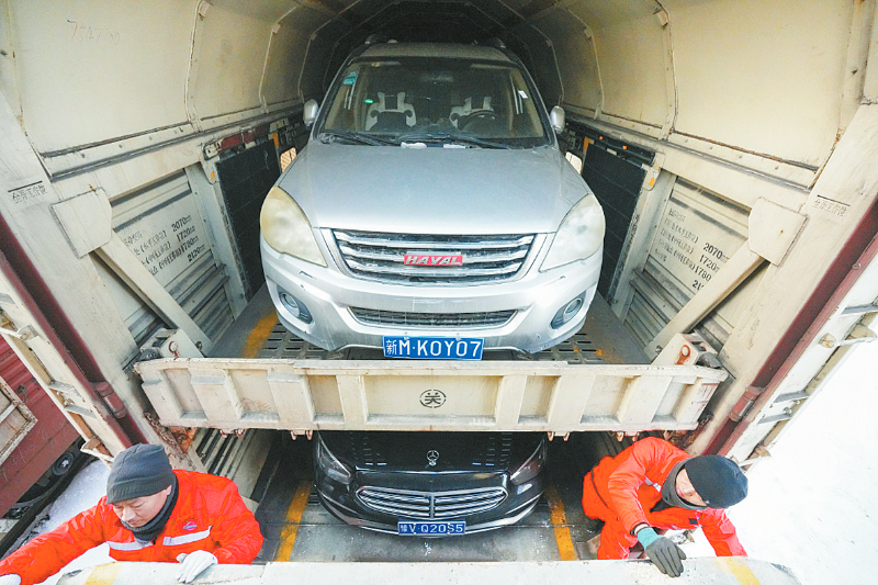 春运临近,在新疆工作的黄先生通过铁路12306平台,为爱车购买了一张返回家乡四川的火车票。他用手机下单后,就有工作人员核验车辆信息、安检、托运。仅需4天,他的爱车和满满一车年货将被运输至目的地。近年来,为了满足人们日益多元化的用车需求,中铁特货物流股份有限公司在铁路12306平台推出了“汽车托运”业务,开通多条热门托运专线。 新华社记者 徐宏岩 摄
