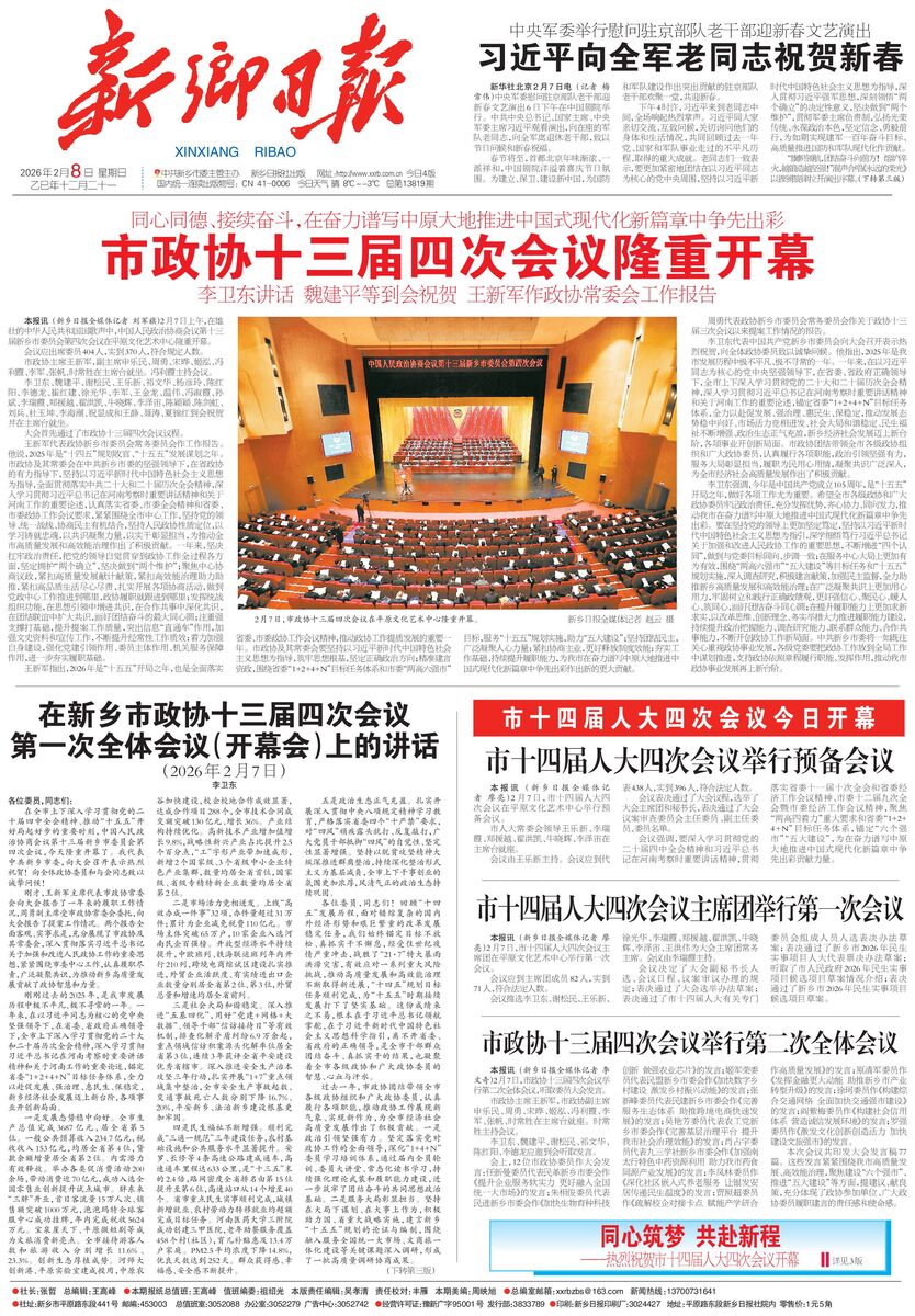 在新乡市政协十三届四次会议 第一次全体会议(开幕会)上的讲话