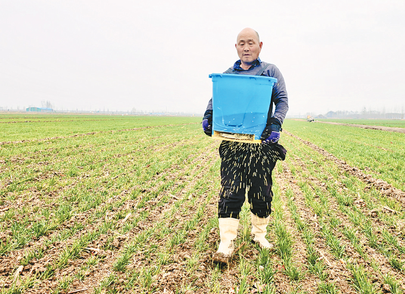 2 月 25日,获嘉县大新庄乡南务村村民抢抓农时,使用便携式施肥器开展麦田追肥作业,为小麦返青生长提供充足养分,全力夯实夏粮丰产丰收基础。