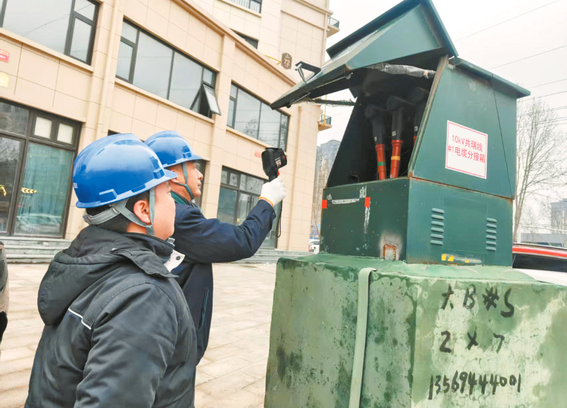 此次特巡以“突出重点、全面覆盖、快速处置”为原则,制订“人巡+机巡+测温”三位一体巡检方案,精准锁定重点区域与关键设备。巡线人员携带无人机、红外测温仪、验电器、绝缘操作杆等工具,深入低洼积水区及老旧台区,对辖区10千伏主干线路、配电分支线及公用变压器开展拉网式排查。针对潮湿环境下设备易受潮、接头发热等问题,巡线人员重点对配电箱、开关刀闸、导线接头等关键部位,进行红外测温与防潮检查,用干布擦拭受潮部位、紧固松动接线端子,及时更换存在绝缘安全隐患的配电变压器附件,确保设备“零缺陷”运行。