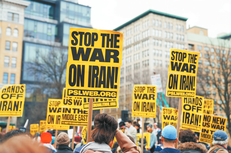 3月7日,人们在美国纽约参加集会游行,抗议美国和以色列对伊朗发动军事打击。 新华社记者 张凤国 摄