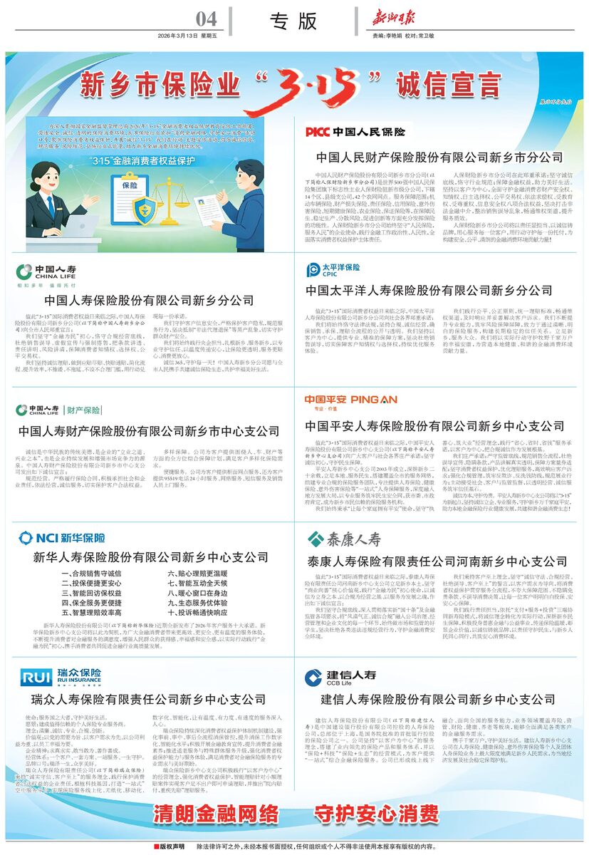 新乡市保险业“3.15”诚信宣言
