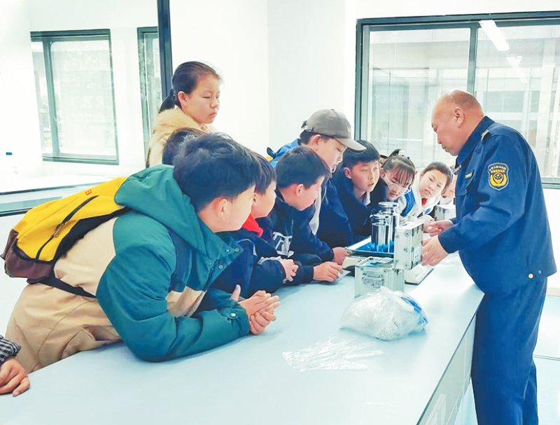 随后,小记者们来到封丘县市场监管局检验检测中心,这里宛如一个神秘的科学实验室,各种先进的检测仪器琳琅满目。工作人员向小记者们展示了食品检测的全过程,从抽样、制样到检测分析,每一个环节都严谨细致。小记者们都瞪大了眼睛,认真聆听工作人员的讲解,部分小记者还在工作人员的指导下现场操作了如何计量、称重等,充分了解食品安全检测是保障市民“舌尖上的安全”的关键防线。