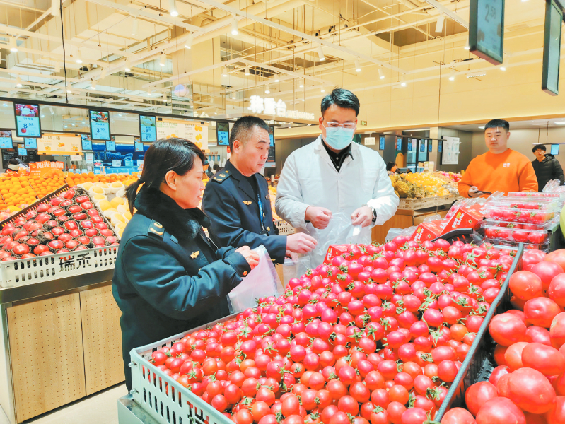 本报讯 (新乡日报全媒体记者 刘美群 文/图)为切实保障人民群众“舌尖上的安全”,提振消费信心,3月15日,全市市场监管部门同步开展食品安全“你点我检、服务惠民生”活动,以“群众点单、现场快检、结果立现”的互动模式,让市民零距离参与食品安全监管,推动构建社会共治新格局。活动当天,市市场监管局联合卫滨区市场监管局在新投·民昇农贸大市场开展活动。市政府食安办副主任,市市场监管局党组成员、副局长李宁现场调研市场开办方食品采购管理和食品安全检验检测情况。卫滨区市场监管局党组书记、局长刘海青一同调研。