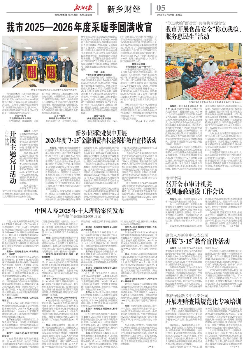 新乡市保险业集中开展 2026年度“3·15”金融消费者权益保护教育宣传活动