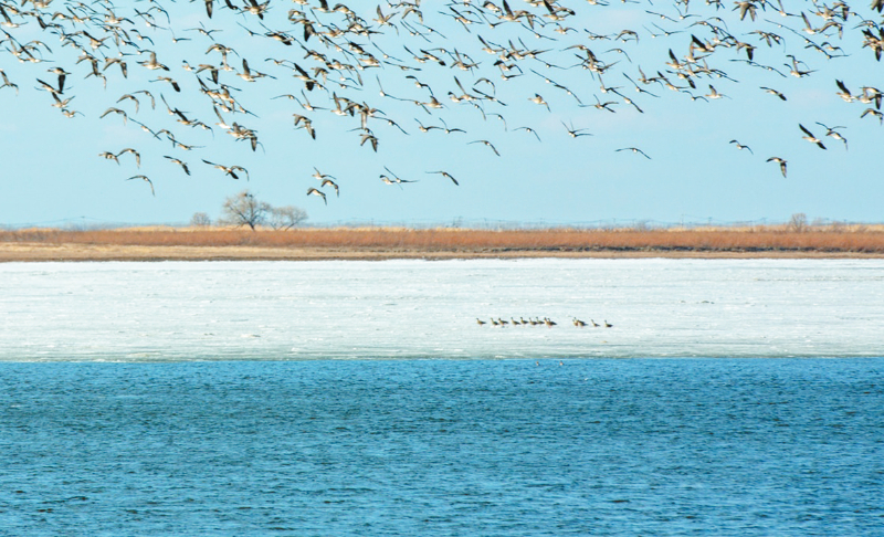 这是3月23日在松花江佳木斯段拍摄的大雁群。