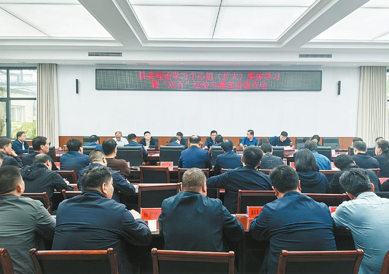 图为获嘉县委理论学习中心组(扩大)集体学习暨“双百”法治专题宣讲报告会现场。