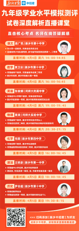“学业水平模拟测评是中考‘定调之战’,新乡名师公益直播教你吃透考点、巧避错题!”