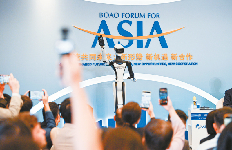 这是3月25日在博鳌亚洲论坛“人形机器人的进阶与飞跃”分论坛上拍摄的机器人。