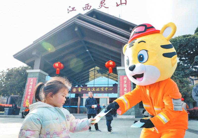 3月25日,在江西省上饶市广信区灵山风景区游客中心前,当地多部门联合举行《森林草原防灭火条例》宣传活动。当前正值农业生产繁忙期,加之清明节假期临近,为减少火灾隐患,活动通过多种形式增强游客和附近村民的防火意识。《森林草原防灭火条例》自2026年1月1日起正式施行。新华社记者 杜潇逸 摄