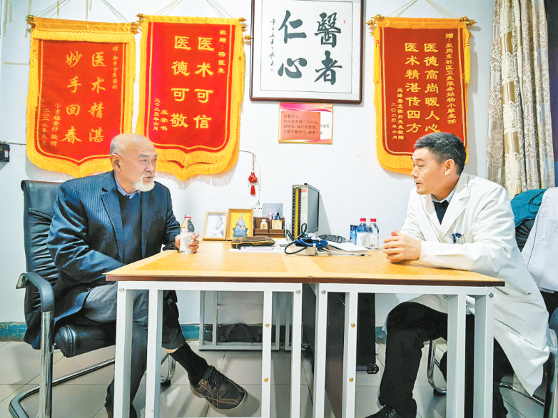 本报讯 (新乡日报全媒体记者刘志松 文/图)3月23日,中国医学科学院药用植物研究所研究员刘延泽应邀到我市山楂、连翘、金银花等中草药种植基地,社区卫生服务站以及部分中医诊所考察指导。其间,他与牧野区双岗东社区卫生服务站负责人、中医潘剑围绕中草药治疗睡眠、中药临床应用等话题进行了深入交流。