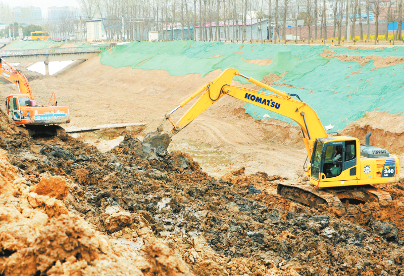 为筑牢汛期安全防线,近日,我市对人民胜利渠(黄河大道段)开展清淤、护坡及护底施工,确保渠道保持良好行洪状态,以万全准备迎战汛期,守护一方安澜。图为3月25日的施工现场。