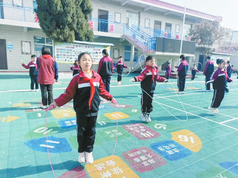 本报讯 为深入践行健康学校16条建设要求,全面落实“健康第一”的教育理念,丰富学生校园体育生活,提升学生身体素质与运动技能,近日,新乡幼儿师范学校附属小学举办跳绳比赛(如图)。校园里绳影翻飞,欢声笑语,全体师生共同见证了一场速度与默契的盛宴。