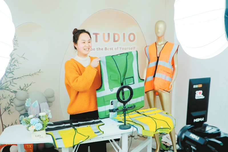 跨境电商作为外贸发展的新动能,为众多企业搭建起高效便捷的国际贸易桥梁,助力本土好物出海、全球特色商品入境,推动跨境贸易数字化、多元化发展,持续激发外贸增长新潜力。图为新乡县金福防护用品有限公司的电商直播间。