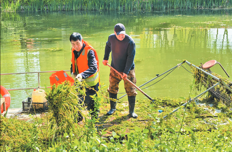 清明假期期间,市水利局河湖事务中心工作人员坚守一线,驾驶打草船在赵定河作业,打捞水草与水面杂物,清理河道、净化水质,让春日河道更洁净、更美观。