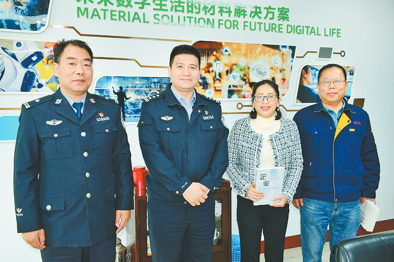 为进一步优化法治化营商环境,增强企业依法经营、依法管理能力,近日,市公安局卫滨分局民警走进辖区某大型企业,开展“送法进企业”主题活动,向企业相关部门负责人赠送企业法律相关书籍,并与企业负责人深入交流座谈,共话企业安全与高质量发展。 吕永强 摄