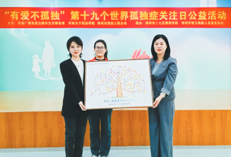 本报讯 (新乡日报全媒体记者姚晶通讯员娄琳文/图)4月1日上午,河南女子职业学院到郑州市二七区辅读学校开展“有爱不孤独”第十九个世界孤独症关注日公益活动,河南女子职业学院校党委副书记马立、副校长徐红娟及近百名师生、志愿者共同参与,用实际行动为“星星的孩子”传递爱与温暖。