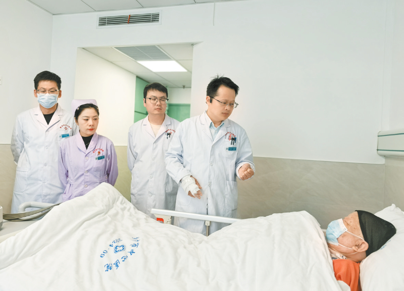 周树伟在工作中认真负责,虽然手部受伤,他仍然坚持每天和医生一起查房,共同处理患者在治疗过程中遇到的问题。