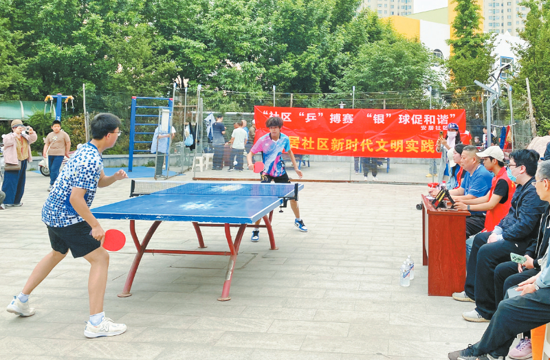 本报讯 4月19日,红旗区向阳街道安居社区举办居民乒乓球友谊赛(如图),以球会友,推动全民健身运动的深入开展,营造和谐社区的良好氛围。
